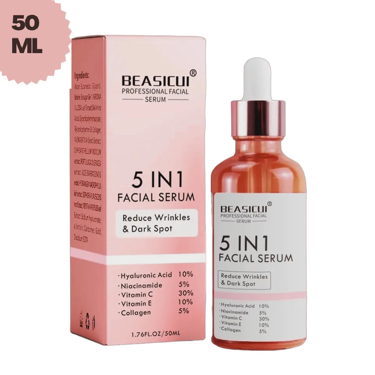 Streef naar een stralende, gezonde huid met onze exclusieve Vitamine C Serum. Onze formule, samengesteld met de beste kwaliteit Vitamine C, Vitamine E, Hyaluronzuur, Niacinamide en Collageen, biedt een krachtige boost van antioxidanten die diep doordringen in de huid voor een pure, egale teint. Upgrade uw huidverzorgingsroutine met onze luxe oplossing voor een onmiskenbaar resultaat.