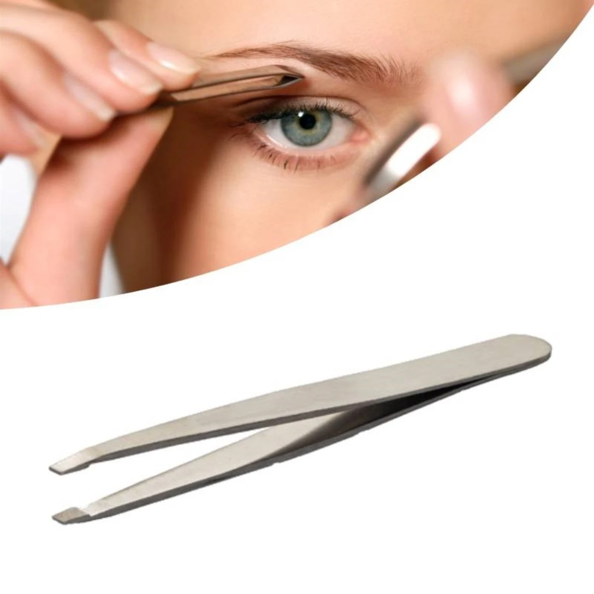 Aan het andere eind is een verende opening tussen de twee bladen, die heel precies op elkaar passen wanneer men de bladen naar elkaar toeknijpt. Kan onder andere gebruikt worden voor splinters in de huid of overige beharing uit het gezicht te halen.