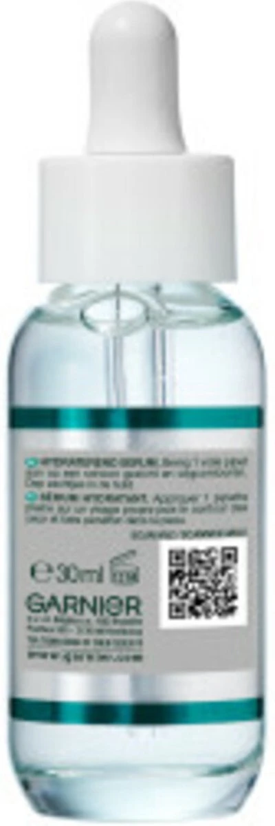 Garnier Hyaluronzuur Aloƫ Vera Serum bevat een sterk geconcentreerde formule met [3%] hyaluronzuur, aloƫ vera and glycerine. Met een hydraterend en verfijnend effect is deze formule gemaakt om jouw huid er gezond en fris uit te laten zien. Ons pure hyaluronzuur wordt verkregen door bio fermentatie. Deze actieve stof staat erom bekend tot 100x zijn gewicht in water vast te houden. Aloƫ vera staat bekend om zijn verfrissende en hydraterende eigenschappen. Direct na gebruik van het serum is de huid zachter, gehydrateerd en ziet er gezonder uit. Na een maand gebruik is de huid weer voller, gladder en heeft een gezonde glans. Ons intens hydraterende en vullende serum heeft een veganistische formule en is goedgekeurd als dierproefvrij onder het Leaping Bunny-programma.