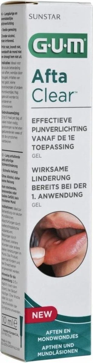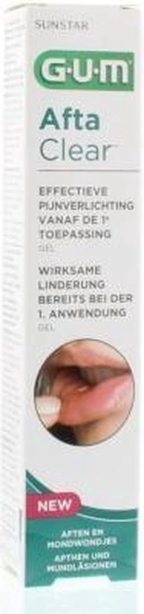 De GUM AftaClear Mondgel, zorgt voor een directe en langdurige pijnverlichting. Uitstekend geschikt voor lokale applicatie bij aften, brandblaartjes, irritaties van het gebit en andere mondwondjes.