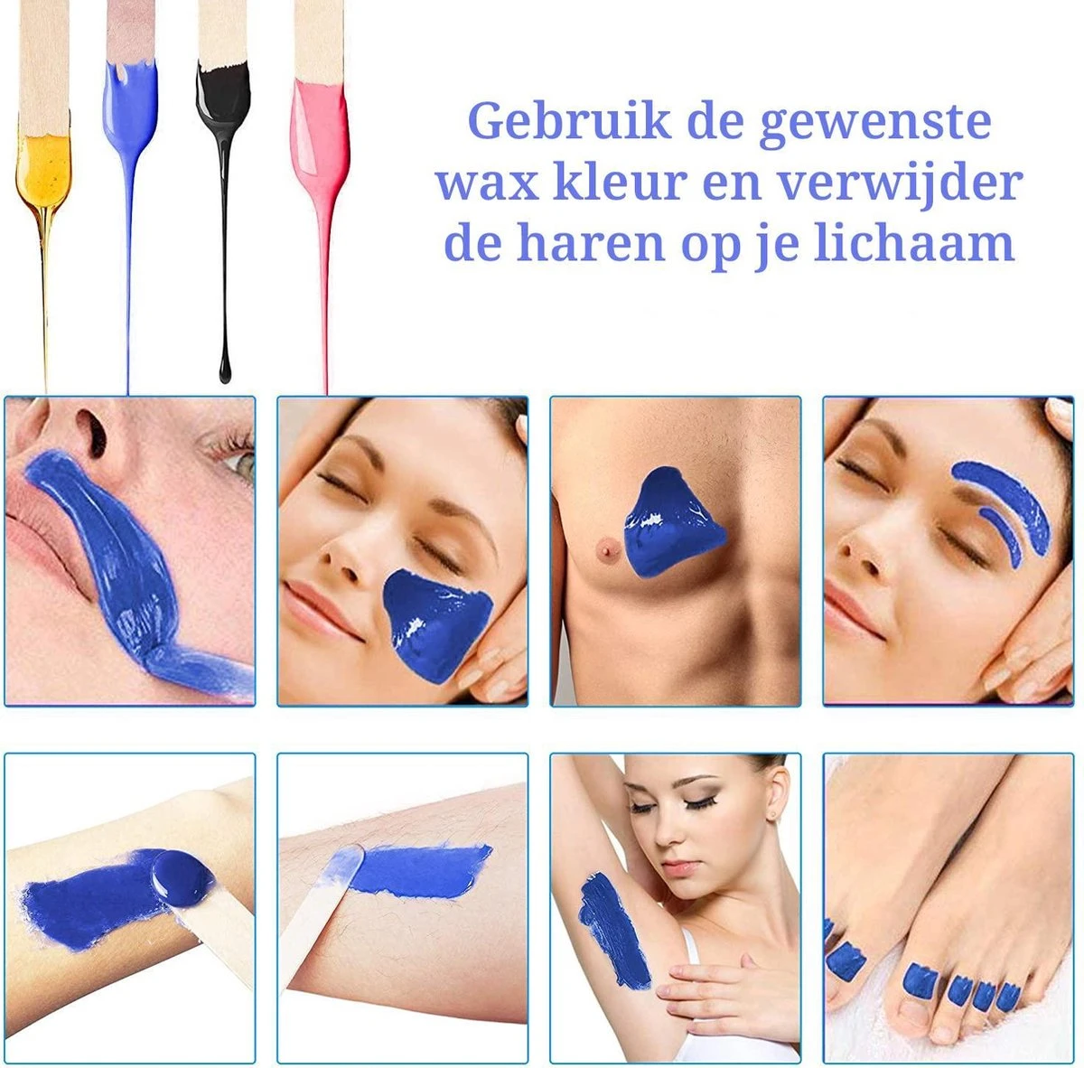 Ontharen op een NATUURLIJK en MAKKELIJKE manier? De BESTVERKOCHTE ontharingswax set van Maxius maakt dat mogelijk! De ontharingswax set wordt geleverd met 5 verschillende geuren en 25 stokjes. Iedere zak bevat 100gram aan wax beans. De wax heater wordt binnen enkele minuten goed warm, de wax beans zijn binnen enkele minuten gesmolten en klaar om gebruikt te worden. Smeer een goede laag wax over het gewenste plek en laat het hard worden, nadat het hard is geworden kan het eraf gehaald worden. Alle haren worden makkelijk en snel verwijderd!
