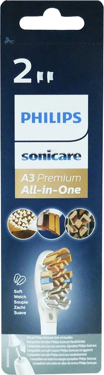 De A3 Premium All-in-One-opzetborstel past perfect bij jouw Philips Sonicare opklikbaar handvat (zie de onderstaande lijst). Klik de opzetborstel vast of haal hem er eenvoudig af voor gemakkelijk vervangen en schoonmaken.