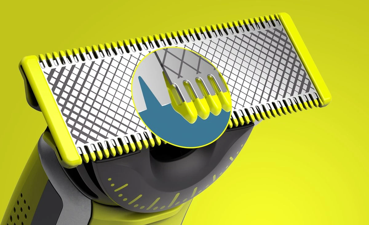Het OneBlade-mesje met dubbel beschermingssysteem (gladde coating en afgeronde uiteinden) beweegt 12000x per minuut, voor een effectieve en comfortabele trim- of scheerbeurt.