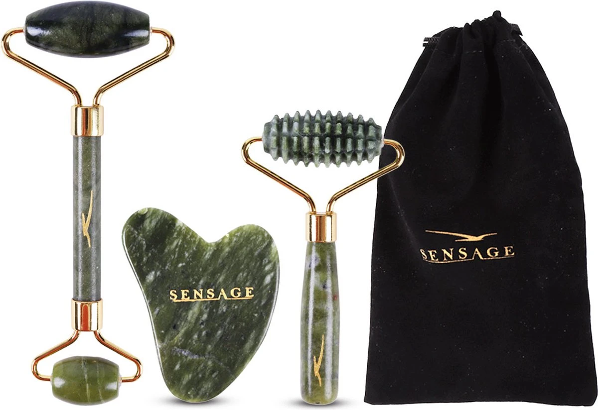 - 1 Sensage enkelzijdige jade roller met gestekelde structuur. Gebruik deze bij veel spanning in het gezicht. Tip: kan ook gebruikt worden voor het aanbrengen van serum, crĆØme of olie waardoor deze beter opgenomen worden door de huid.