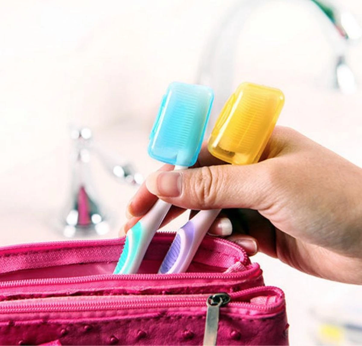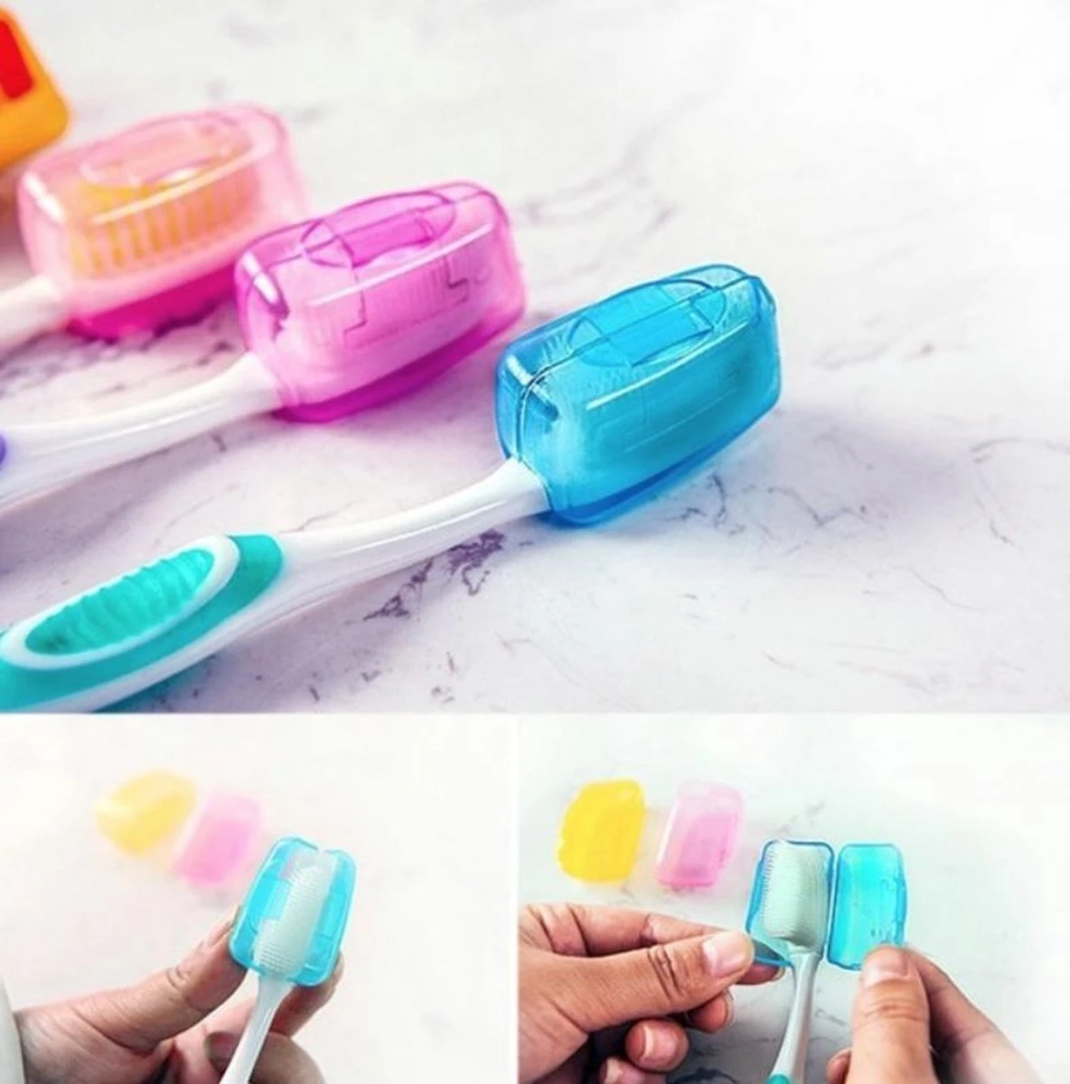 Houd je tandenborstels schoon en beschermd wanneer je op reis gaat! Set van 5 handige gekleurde doosjes om jouw tandenborstels schoon te houden.
