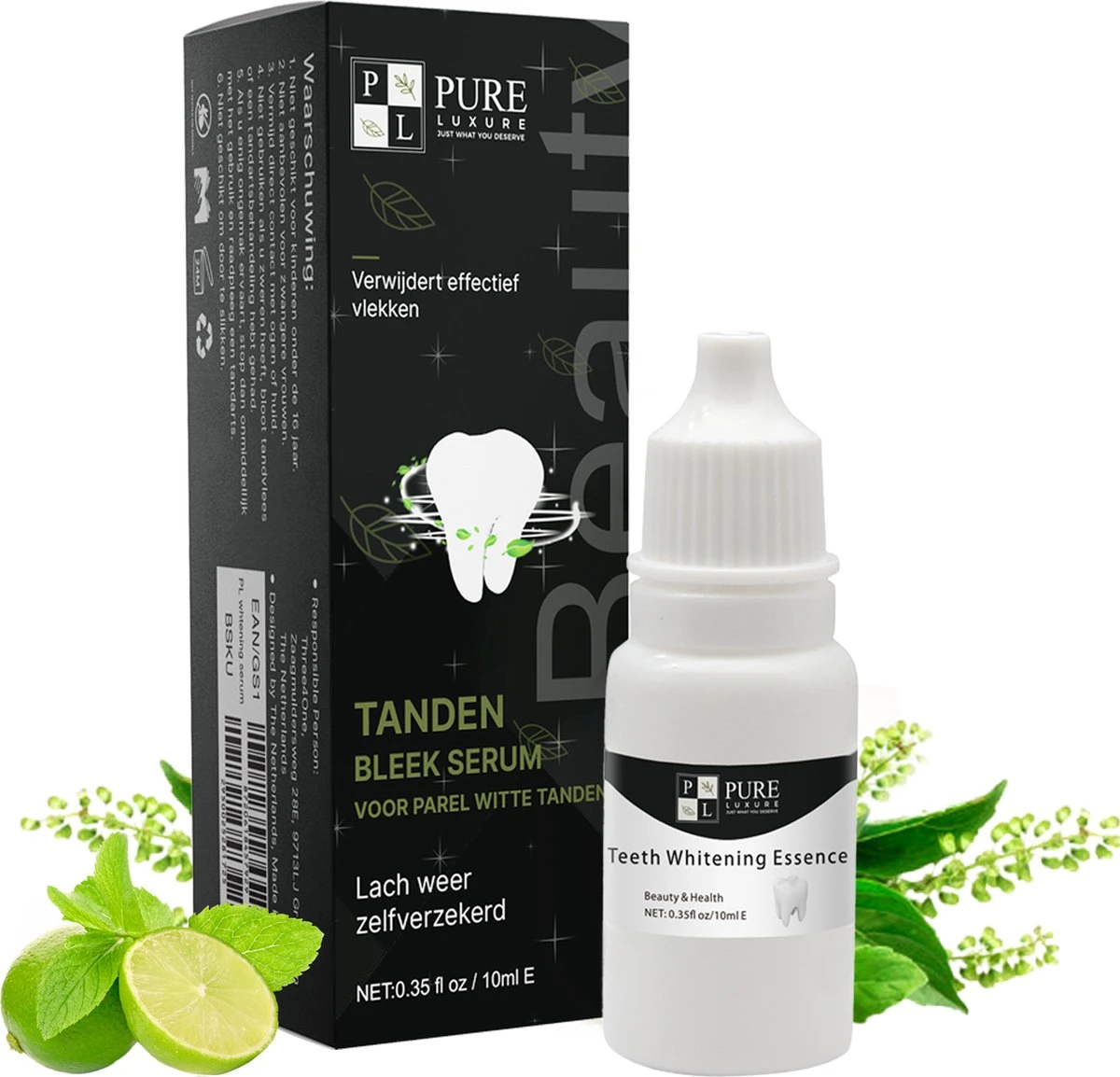 Verpakkingsinhoud: 1x 10ml teeth whitening serum en 10x wattenstaafjes