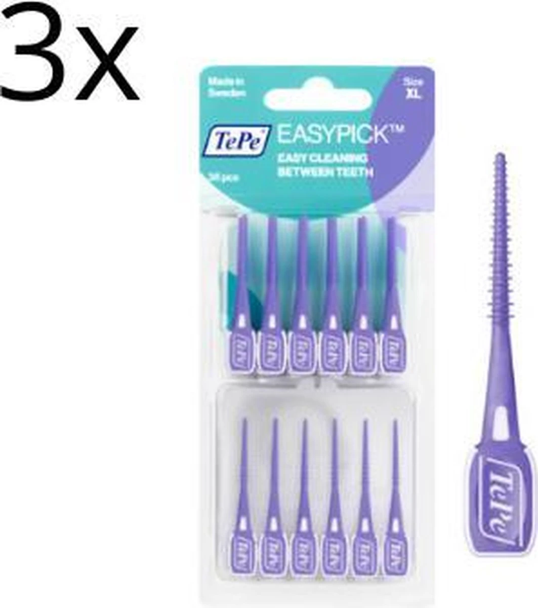 TePe EasyPick is de volgende generatie tandenstokers, conisch gevormd met nu drie overlappende maten. Dagelijks gebruik houdt het tandvlees, tanden en kiezen gezond en fris. TePe EasyPick⢠is een eenvoudige en efficiënte manier om tussen de tanden te reinigen. De unieke combinatie van de materialen maakt de TePe EasyPick⢠flexibel, duurzaam en comfortabel in gebruik. TePe EasyPick XL is specifiek bedoeld voor grotere interdentale ruimtes.