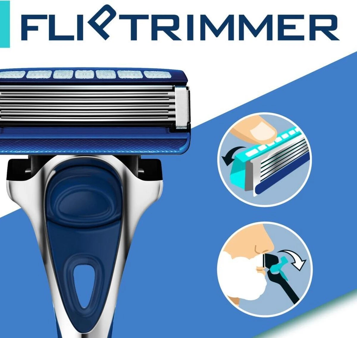 - Scheer precies met de flip trimmer, ook op de moeilijk bereikbare plekjes. Simpelweg het gelreservoir met de duim terug klikken.